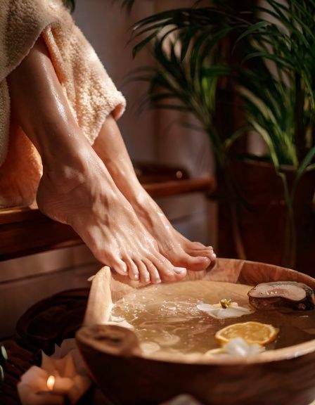 O escalda-pés é um ritual de relaxamento profundo que prepara o corpo para receber a massagem. Através da água morna, aromas naturais e movimentos suaves, os pés — que sustentam todo o corpo — são estimulados e cuidados com atenção.